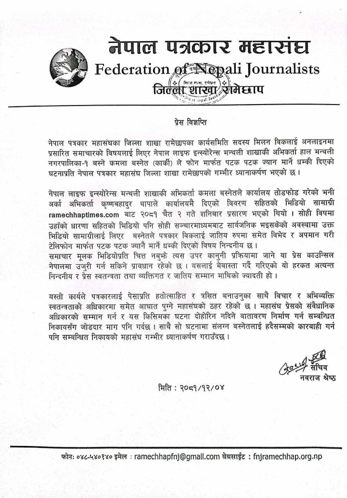 प्रेस विज्ञप्ति, ४ चैत्र २०८१